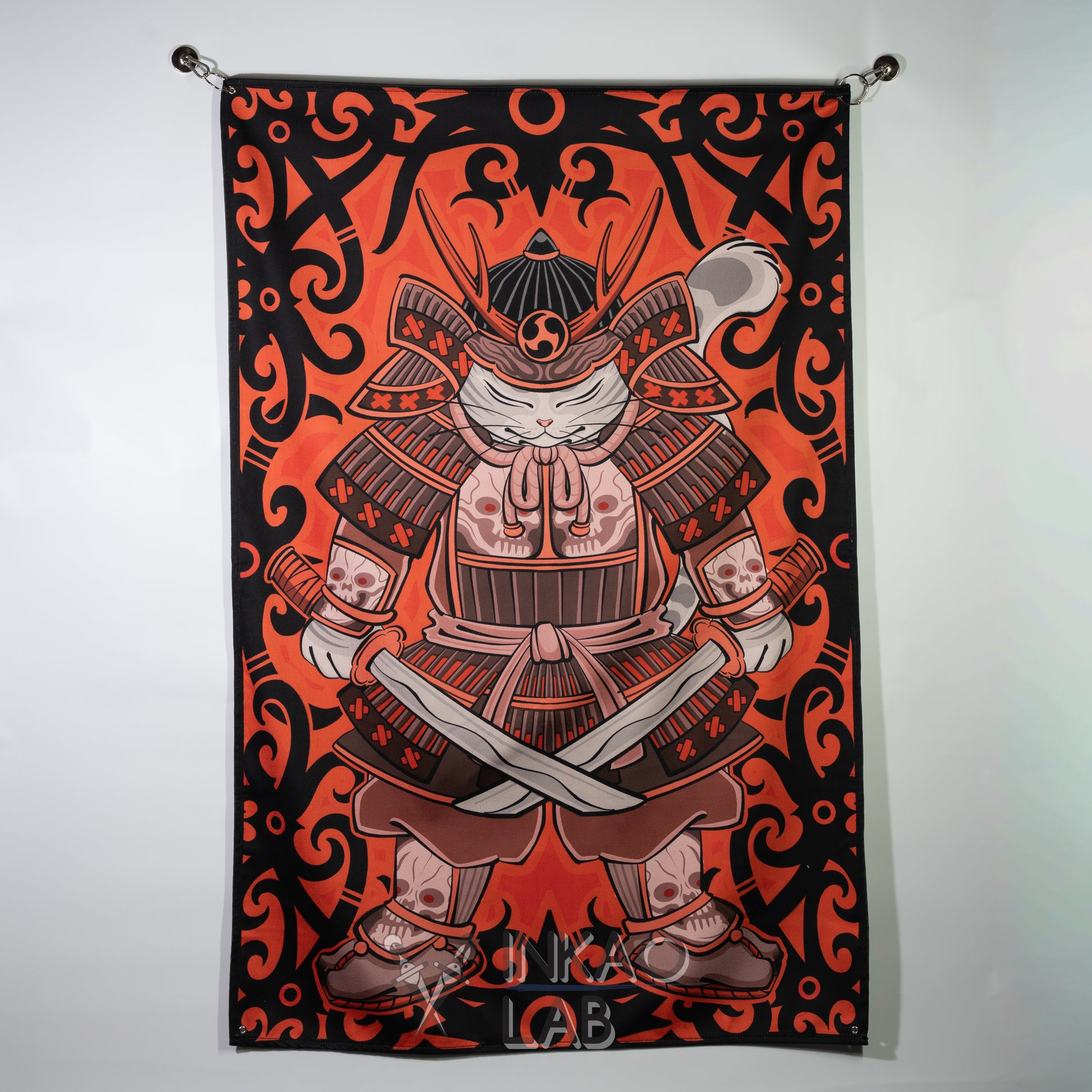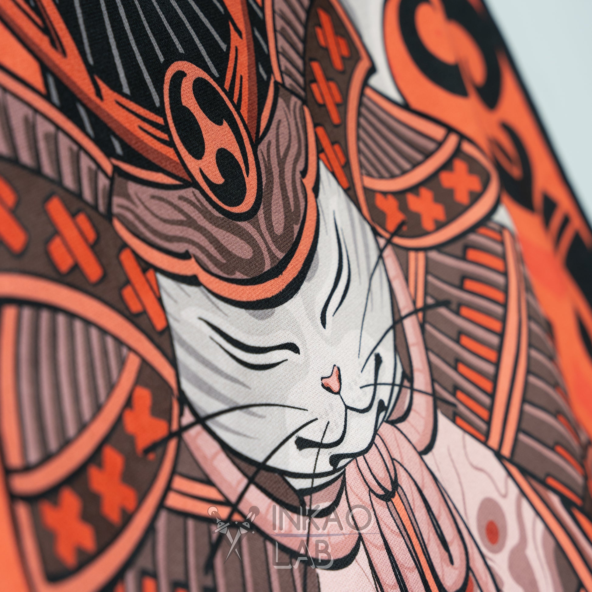 Este exclusivo diseño "Gato samurái" ha sido creado por un reconocido artista del tatuaje, que plasma su arte oriental con gran maestría. Impreso en una tela decorativa de alta calidad, combina tradición y estilo contemporáneo, aportando un toque único y sofisticado a cualquier espacio. Ideal para quienes valoran el arte auténtico y buscan piezas decorativas con significado y carácter.