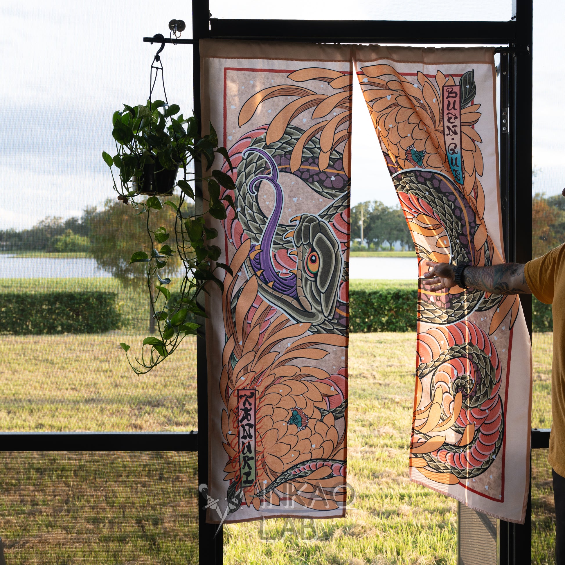 This beautiful Japanese noren curtain is made of excellent quality fabric, ideal for adding a cultural, artistic touch full of positive energy to any space.